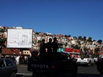 La police a violemment dispersé la manifestation non-autorisée à l'appel de Free FM, une radio de l'opposition, à Antananarivo, le 19 mai 2012.